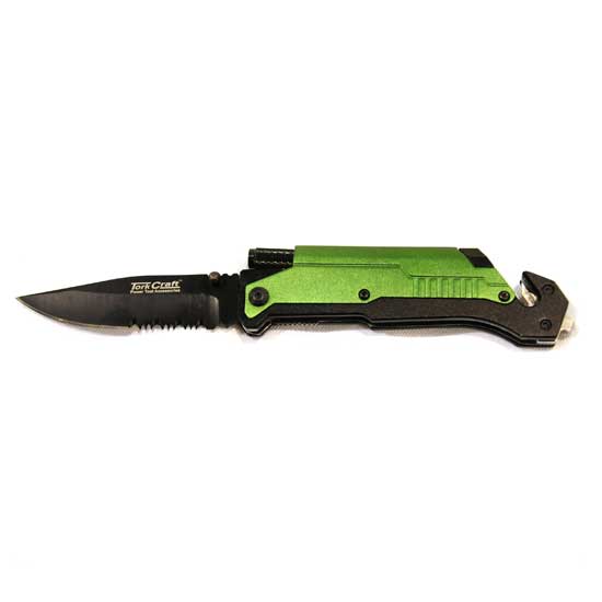 This survival knife comes with a straight and serrated blade for cutting different items. The robust green-and-black handle promises firm grabbing for users. This powerful survival knife is a must-have item for helping you survive in the wilderness.