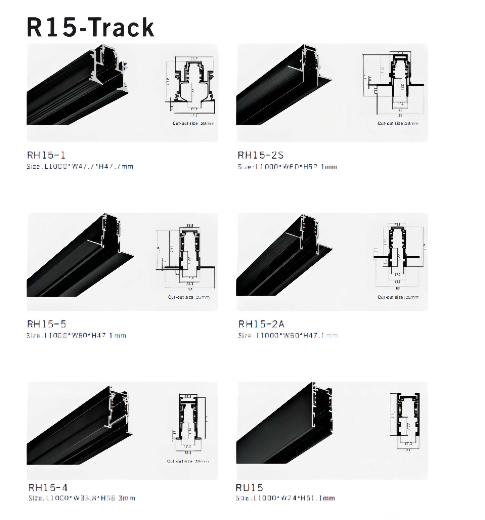 Magnetic track rail, in the size of 15mm, 20mm & 35mm are available;