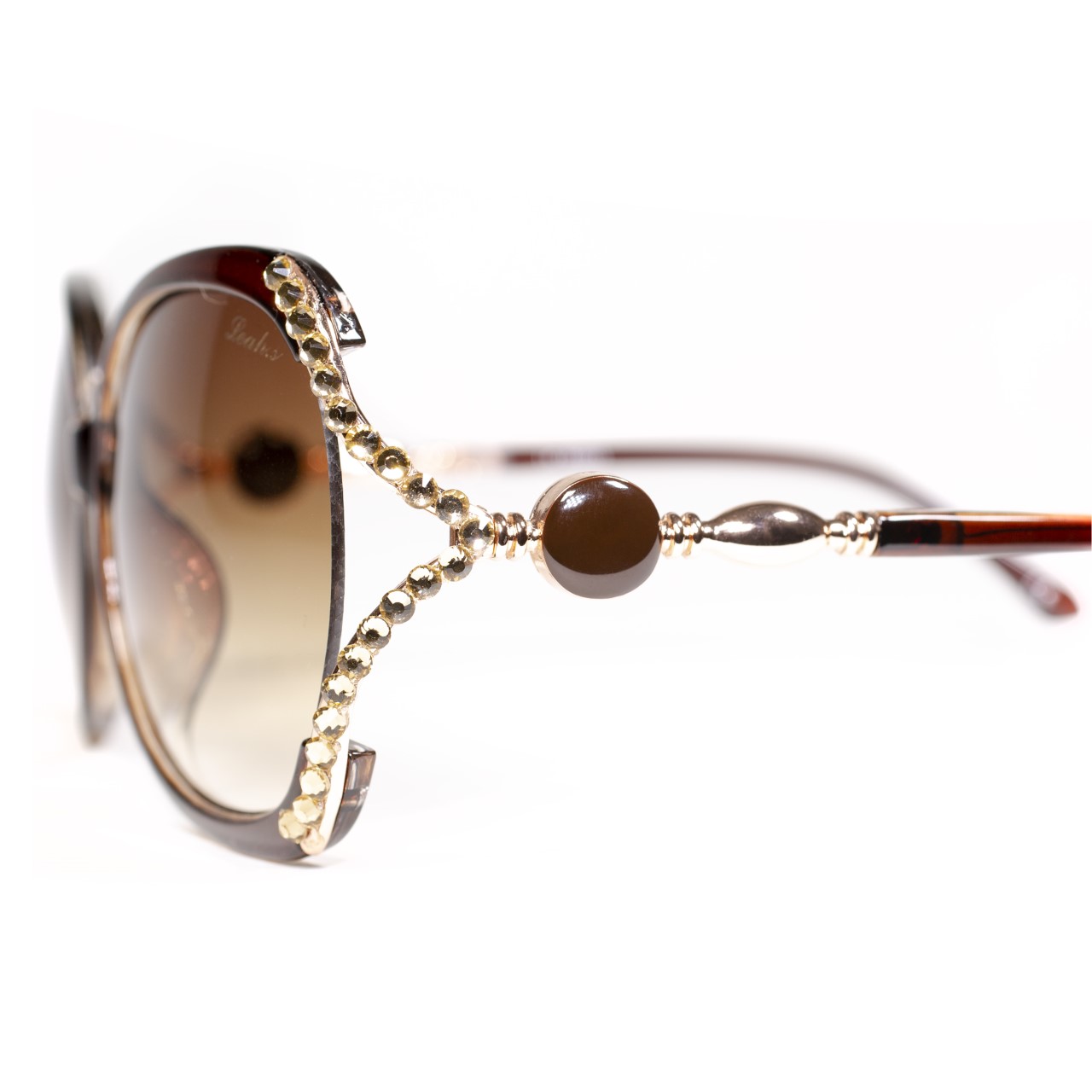 Bring some sparkle to your summer edits with these exceptionally designed sunglasses. Flaunting a slightly oversized design, this pair features a frame encrusted with forty sparkling Swarovski crystals and a blend of green, jade and gold metal balls, so it emits a reflective and mesmerizing glow once it hits the sun. The well-designed pair also employs brown polycarbonate scratch-resistant lenses, promising 100% UVA and UVB protection. Offering a blend of style and protection, these shades are the summer essentials to pop in your everyday tote.