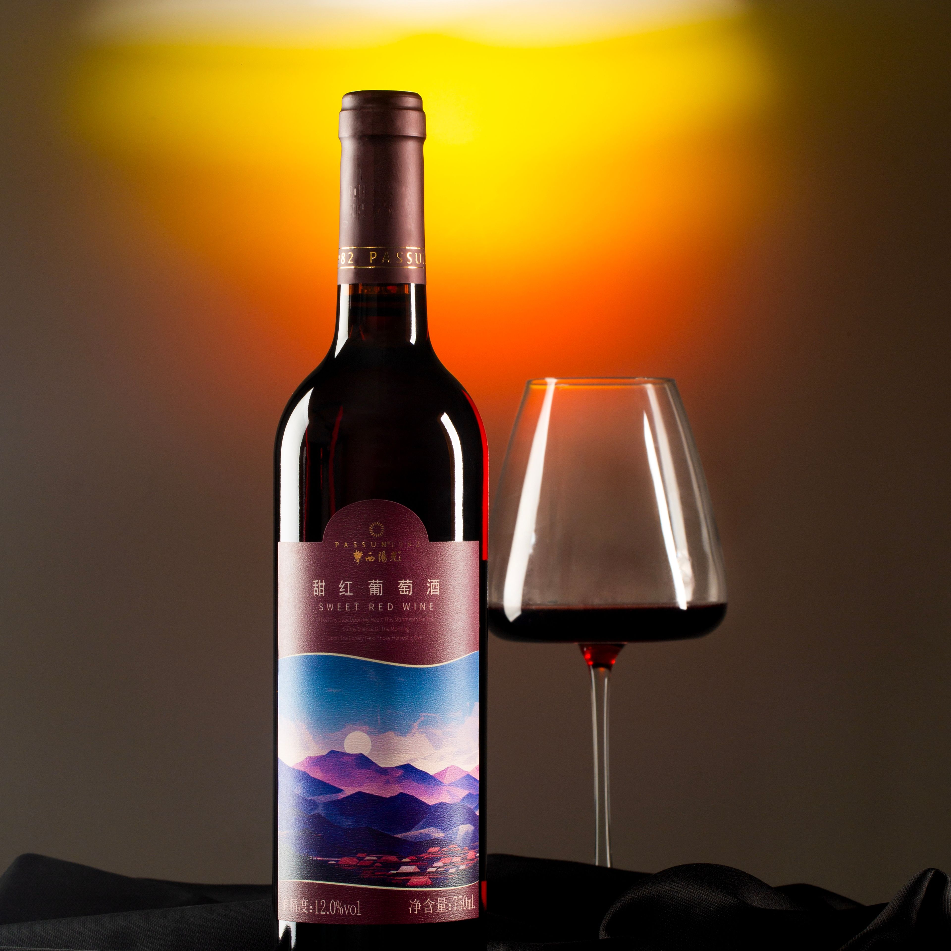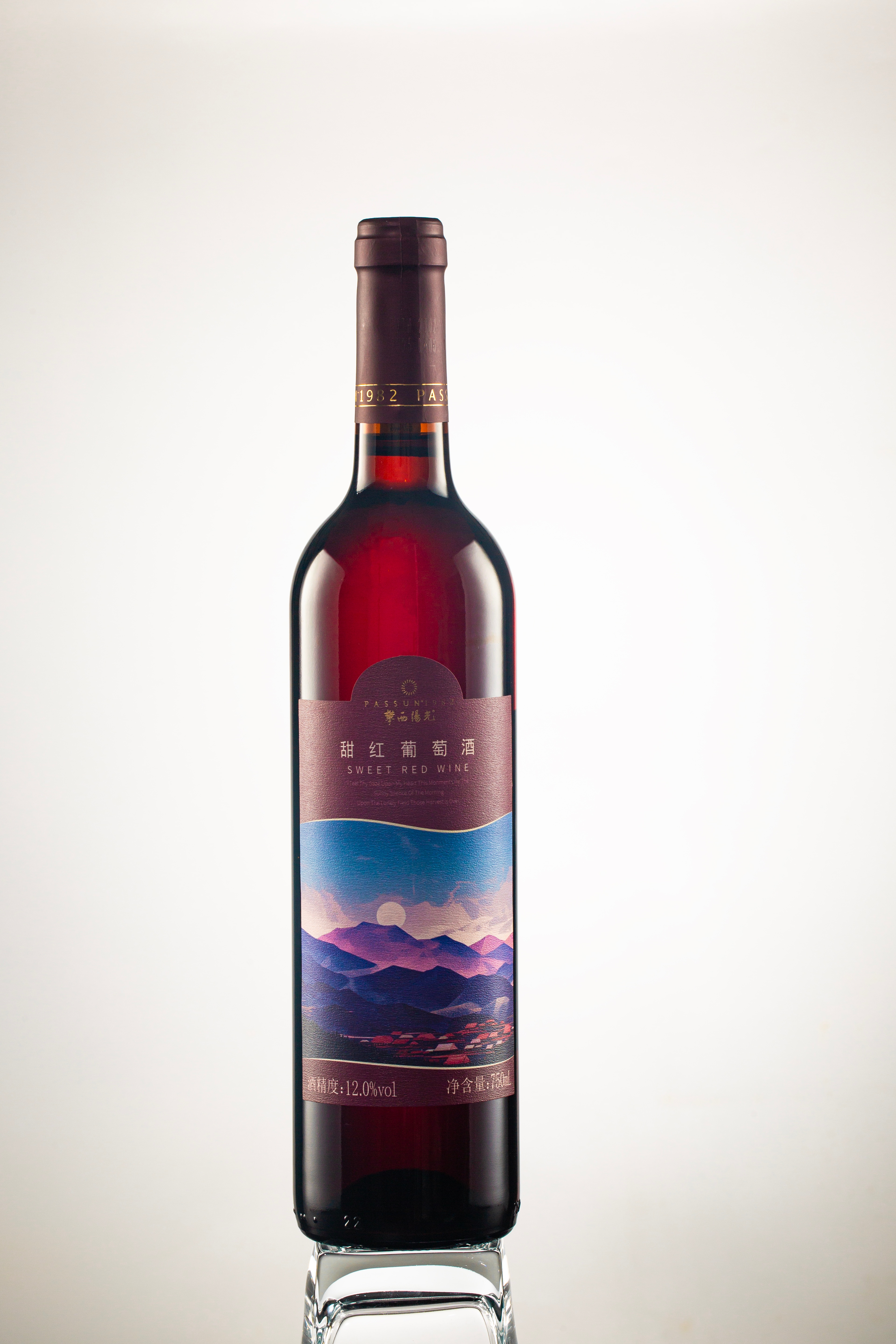 The purple mountains on the label represent the magnificent outline of the Panxi Plateau, while the red base symbolizes a sweet life. The sunlight effect on the label shifts with viewing angles.