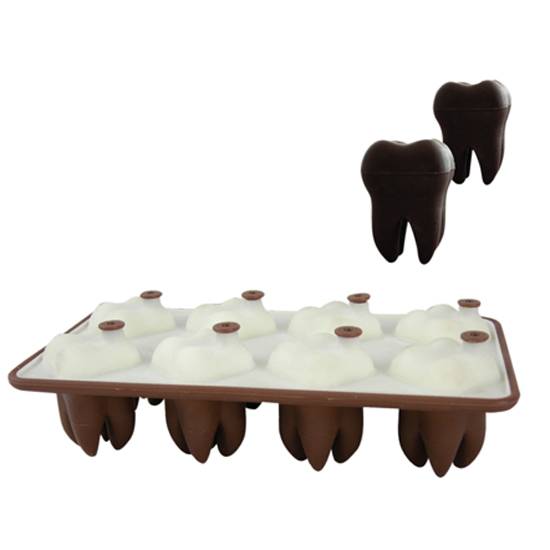 This is a chocolate mould which can give the shape of molar teeth for chocolates. The root part is filled first and the cap can be filled after it is placed on the roots.