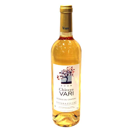 This sweet white wine is produced in Monbazillac AOC in France. It presents a fine golden color and has aromas of pear and grapefruit. The texture of this wine is round and soft.