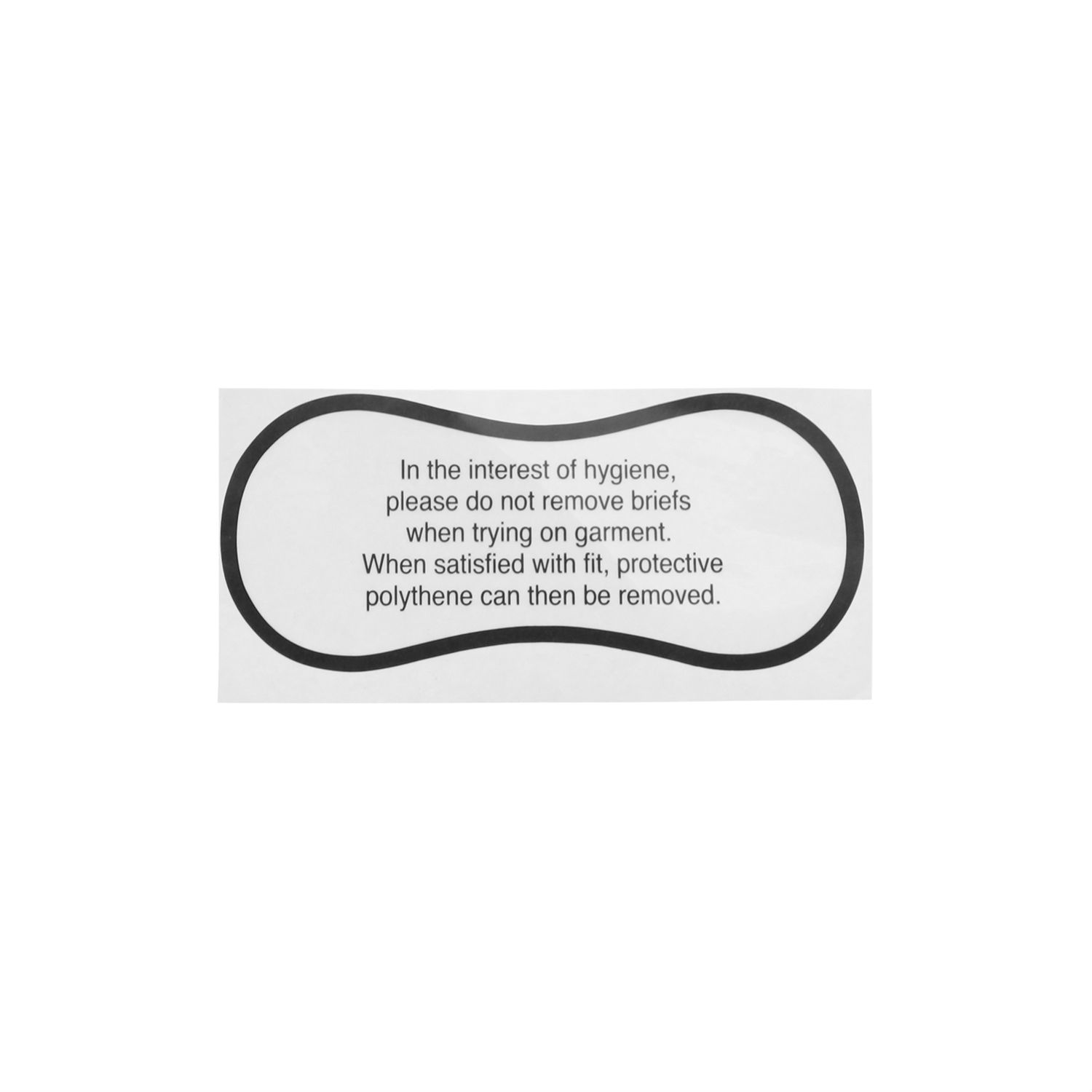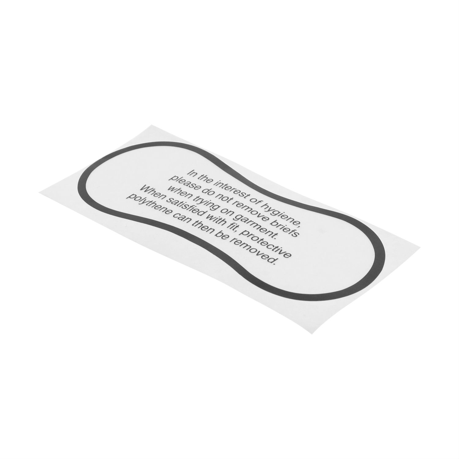 This transparent sticker is designed for swimwear use and has a clear body printed with words. It offers ample space for printing and has garment glue for easy attachment. The swimwear sticker flaunts excellent workmanship and is ideal for showing hygiene instructions.