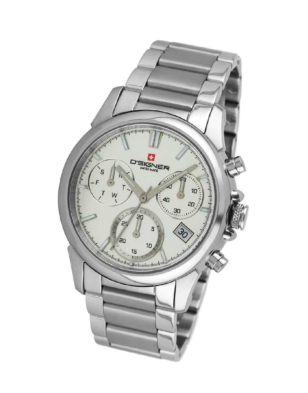 The displayed mens’ chronograph watch is made in Swiss and has an all stainless steel construction. It has chronograph function and has a round dial with three sub dials for offering different functions. This watch ensures superior precision and is great for matching a classy look.