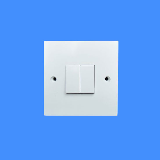 This is a switch socket with a neat and simple design. It features a square panel with two buttons in white. The high-quality material promises a long service life.