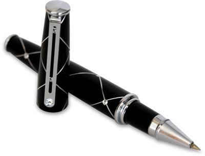 • •This is a series of namely bling bling rolling pen. The rolling pens have the gorgeous silvery bodies decorated with flashing metal lines and dots on the tube. The pen comes with a cap with a clip that can rest on the back end. These rolling pens are created with the inspiration from the new trend of "diamond decorations" and "bling bling" styles.