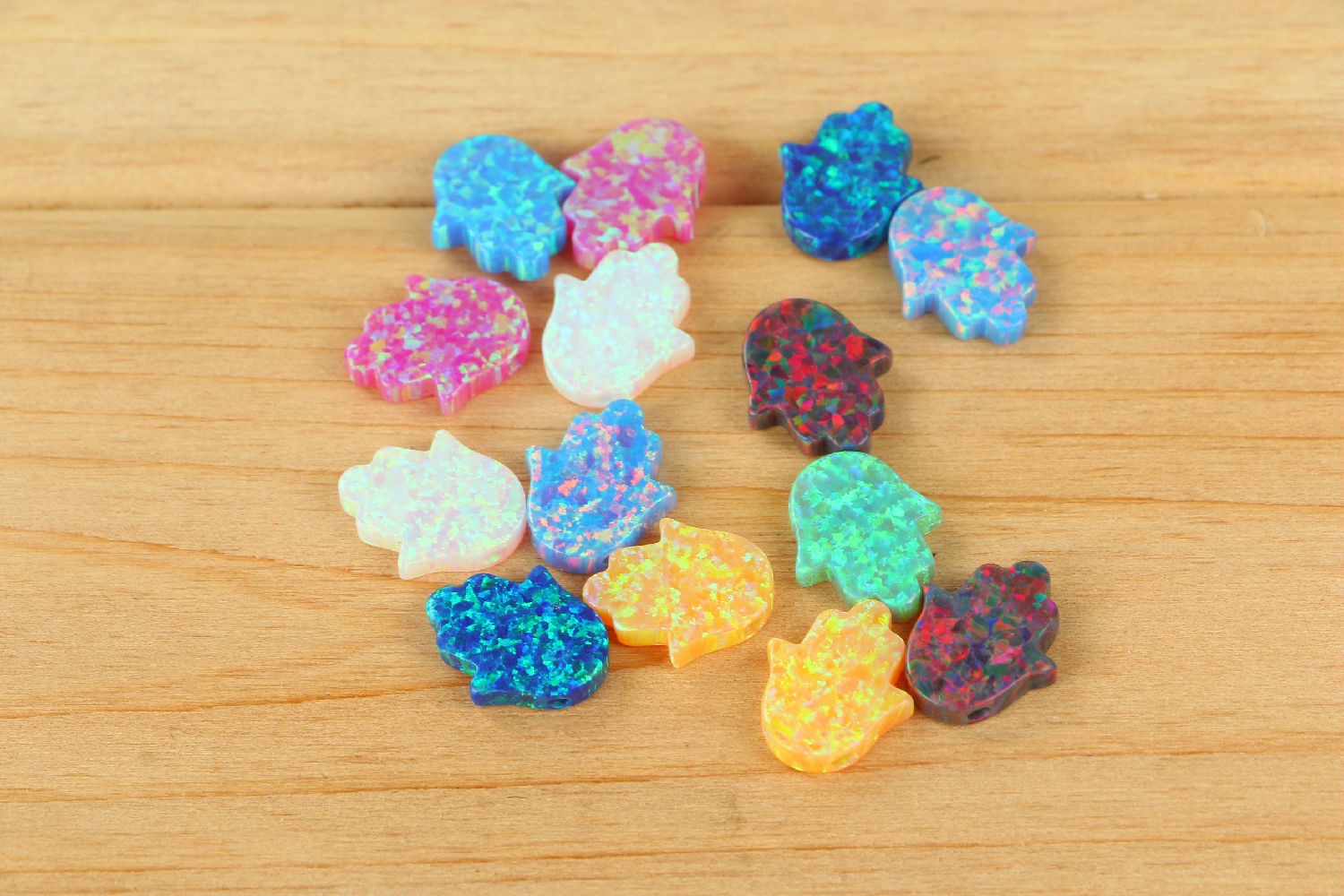 Synthetic Opal Hamsa Shape 13x11 , 14x10, 8x6, 7x5mm 42 colors of Hamsa Shape and Cross, David Star, Hay.....