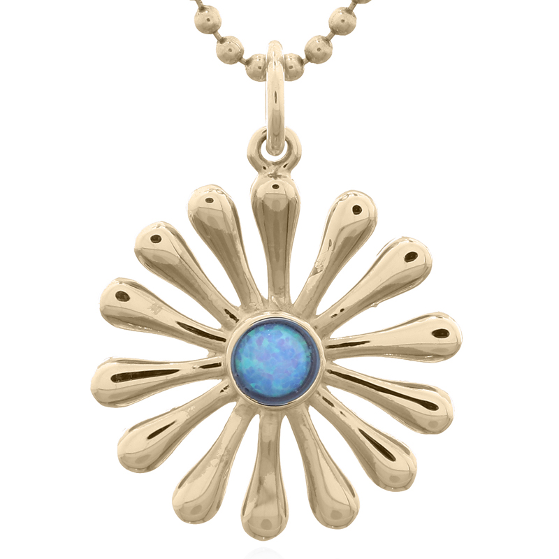 OEM/ODM Synthetic Opal Rounded Sun Ray Gold Plated 925 Silver Pendant from Thailand.