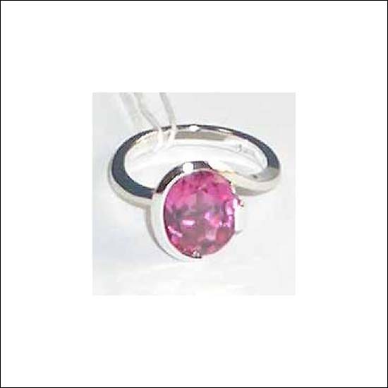 • A 925 silver ring set with a synthetic pink sapphire