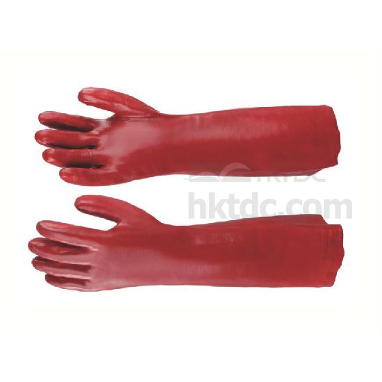 18" Red PVC chemical glove, smooth palm, T/C lining