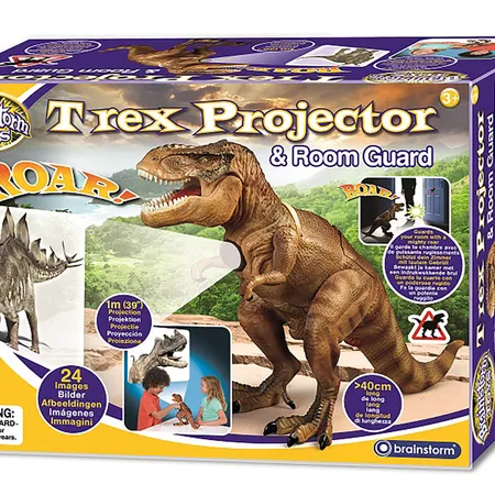 Bring realistic dinosaurs into your own room! This high-quality T rex shaped projector has 24 dinosaur images that will project onto your bedroom walls, up to one metre wide. Features 18 different types of dinosaur.