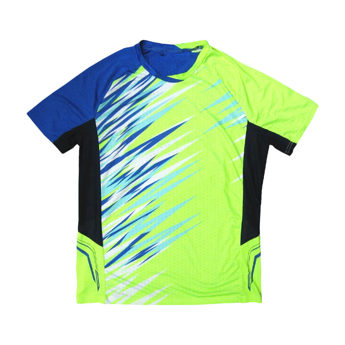 Highlighted here is a quick drying T-shirt made of breathable and lightweight fabric. It comes in a short sleeved design and is adorned with contrasting colors on the right sleeve. This T-shirt flaunts a sporty and energetic look and is excellent for sports and casual occasions.