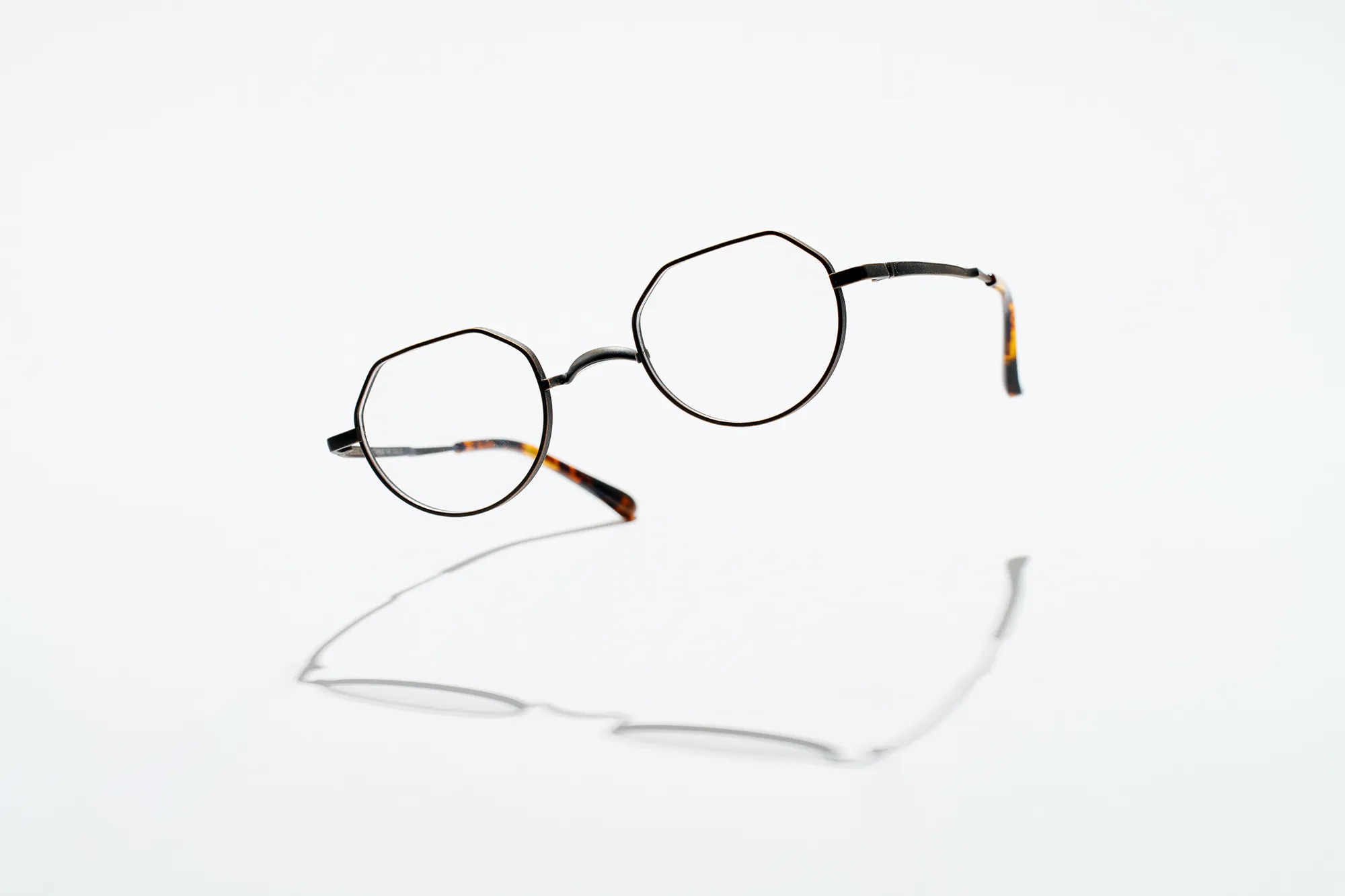 Minimalist crown panto frame design with mountain like nose pads, acetate temples, and thickened sides, adding three-dimensional feel to the appearance. We provide same frame with - T49.