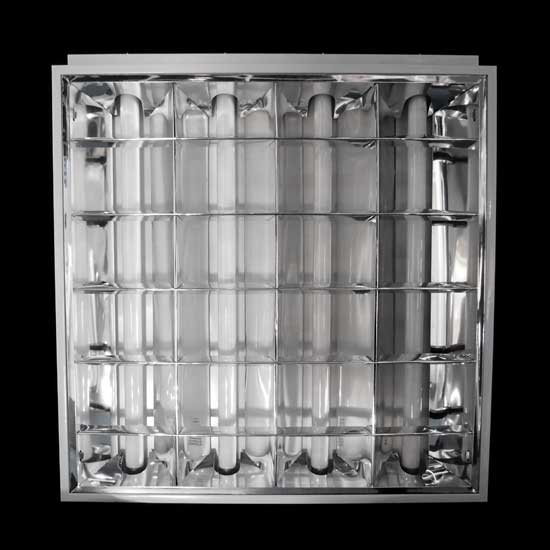 This T8 grille lamp is an ideal commercial lighting solution for offices, shops, schools, hospitals, etc. It is constructed of an aluminum and iron housing in a mirror finish. The four T8 tubes emit soft and uniform light with a wide beam angle.