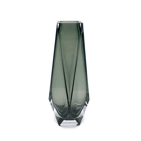 Like a cut gemstone with its brilliant facets, this vase is a stunning centerpiece – with or without flowers. This piece is expertly hand-blown and features a beautifully polished lip that enhances its strong geometry.
