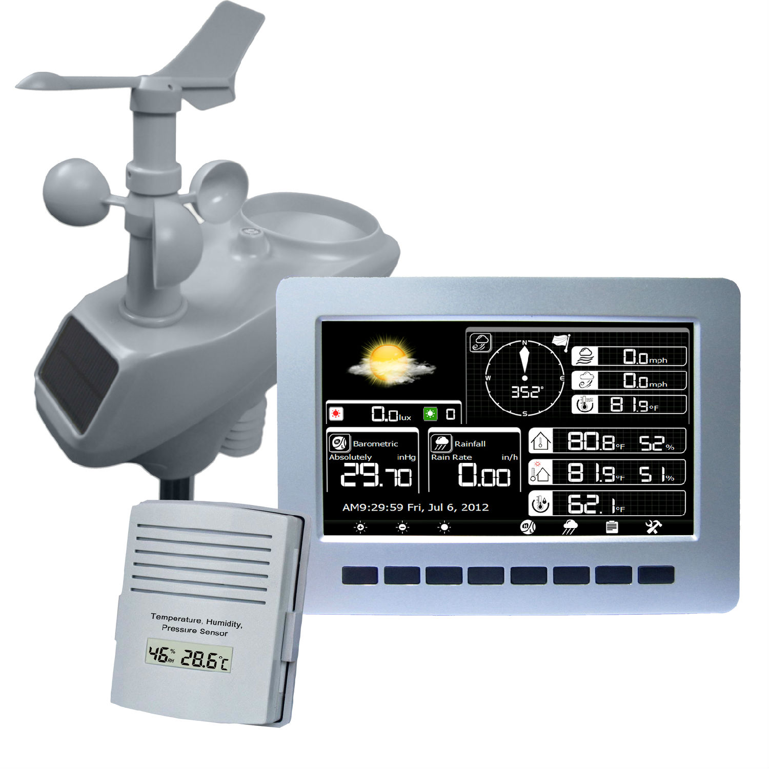 Full color menu based TFT LCD full color display Wireless all-in-one integrated sensor array measures wind speed, wind direction, temperature, humidity, wind speed, wind direction, rainfall, UV and solar radiation Encrypted WiFi internet two-way communication Publish real time data to Wunderground.com every 14 seconds. No fees.