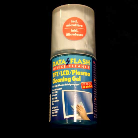 The gel cleaner and microfibre cloth are especially designed for streak-free cleaning of TFT, LCD and plasma screens. You can spray the cleaner onto the microfibre cloth to clean the surface. Any residual liquid can be removed using the dry section of the microfibre cloth.