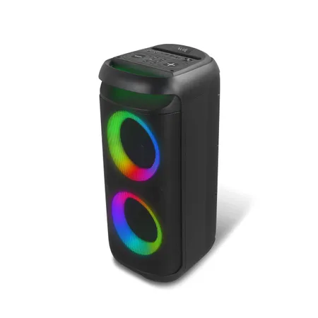 Turn up the volume and take the party anywhere with the TK-6628. Designed for both power and convenience, this speaker delivers deep, room-filling bass, electrifying LED light effects, and a sturdy built-in handle with a sleek red grip for comfortable, one-handed carrying.