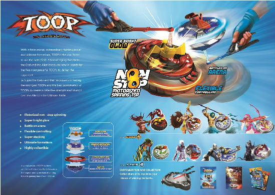 TOSY has brought the traditional game of spinning top to the next level with its latest invention: TOSY TOOP – a new generation of battling tops with many distinctive features: