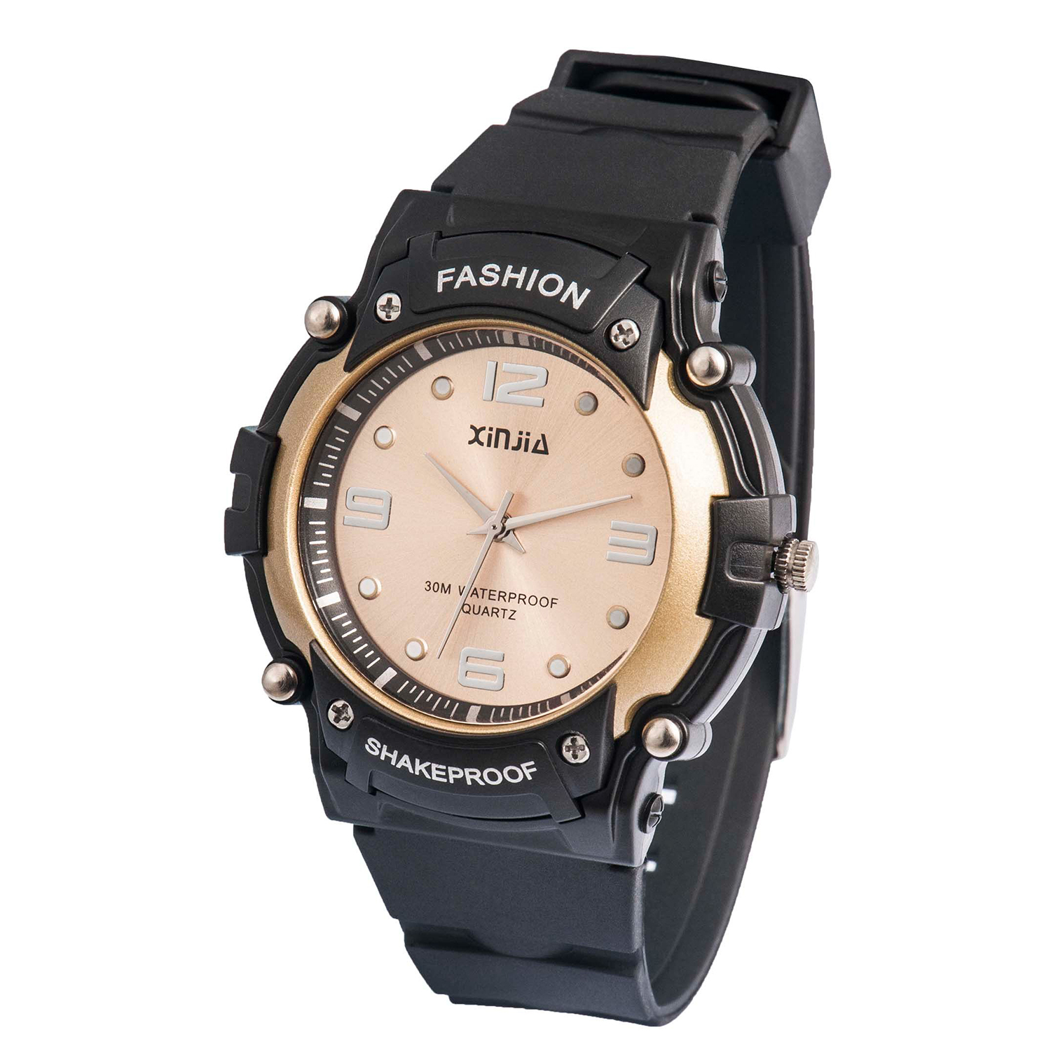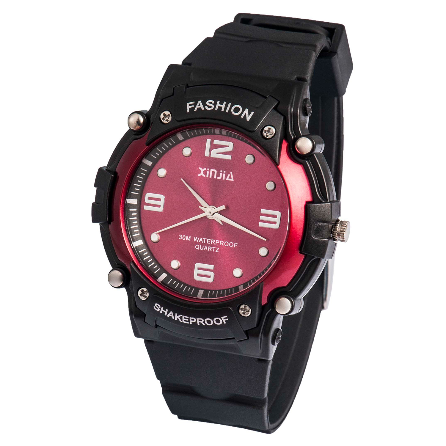 Add a sporty and stylish touch to your look with this quartz analog watch. It is equipped wiht a quartz movement and has three hands with Arabic numeral hour markers on a round dial to show the time. This quartz analog watch delivers superior precision and has an adjustable watch strap to ensure a flexible and comfortable fit.
