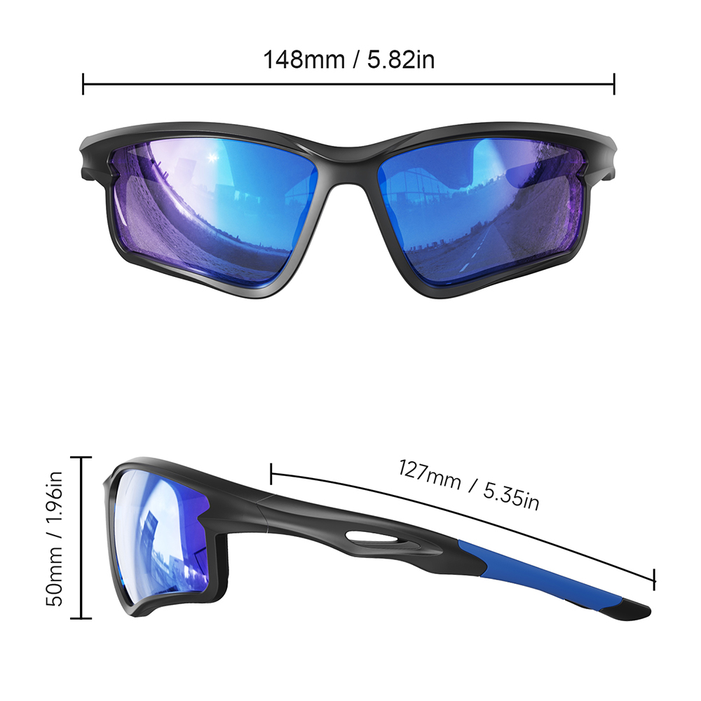 Lightweight and aerodynamic: The frame is designed with high-quality ultra-light material TR90, which is aerodynamic to minimize wind resistance, reduce facial pressure and ensure long-lasting comfort.