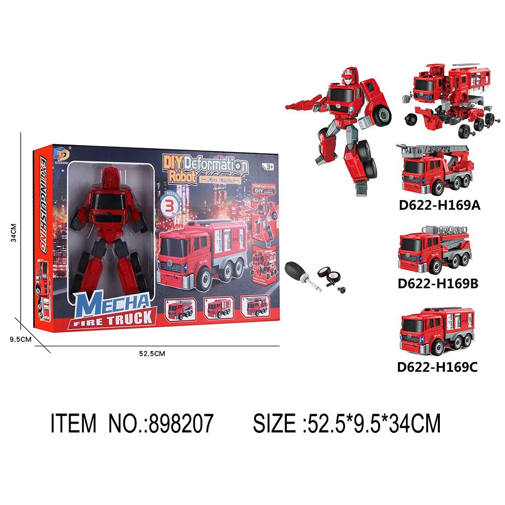 TRANSFORMING DIY FIRE ENGINE PLAYSET WITH MUSIC & LIGHTS(USE 3 PCS AG13 INCLUDED),TEST REPORTS:EN71 PART-1/2-3/PHTHALATE.