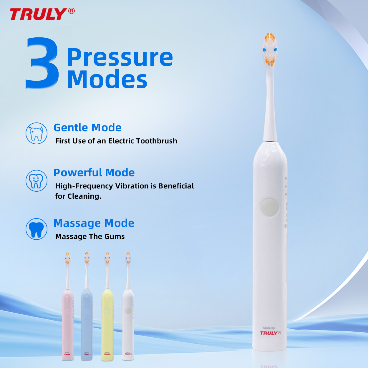 This TRULY adult electric toothbrush delivers a premium and user-friendly oral care experience with outstanding performance and thoughtful design. Adopting advanced magnetic charging technology, it enables easy, stable and efficient recharging for hassle-free daily use. With an IPX7 waterproof rating, the toothbrush is fully washable and safe to use in wet environments, effectively enhancing cleaning convenience and product durability.