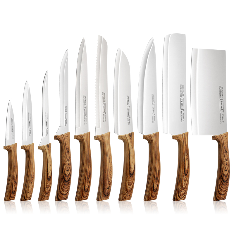 TUOMEI Wooden Pattern Plastic Handle Kitchen Knife