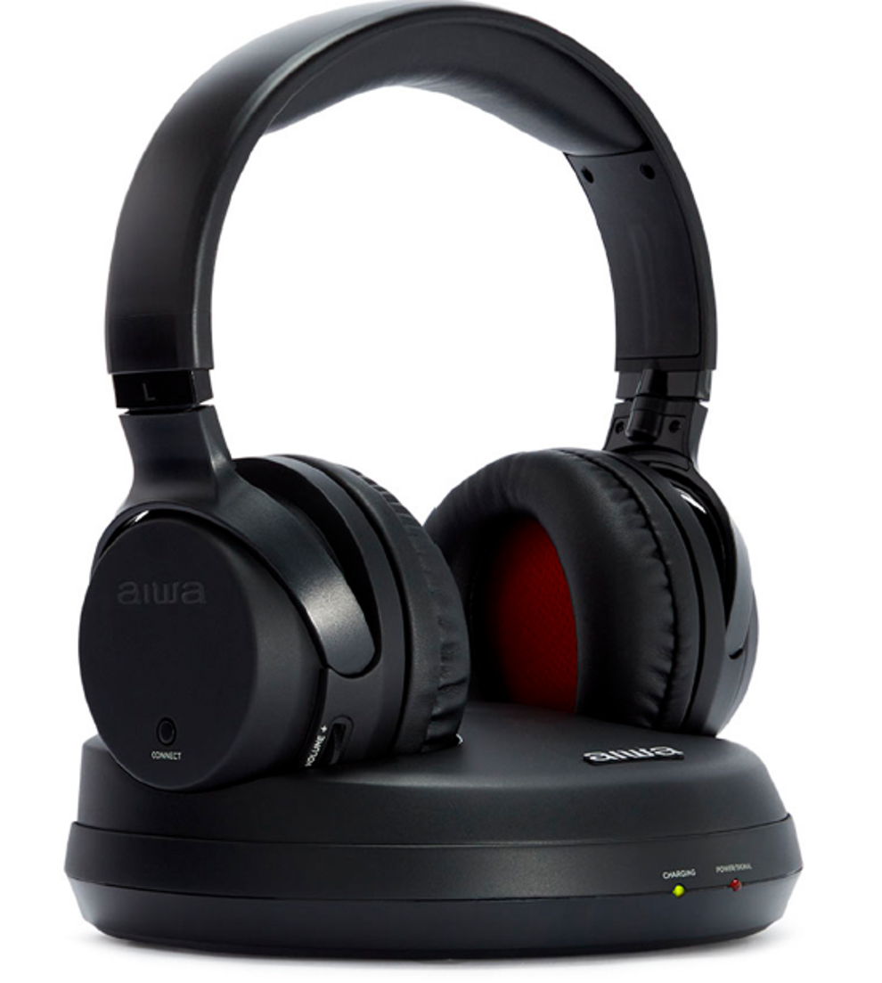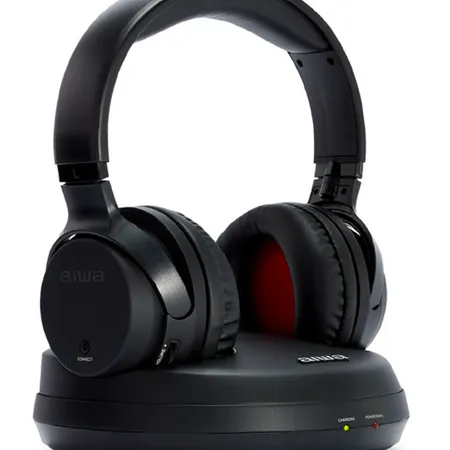 The wireless RF 863-865 MHz stereo headset allows free movement up to 100 meters, with interference-free stereo audio, automatic pairing, and long battery life.