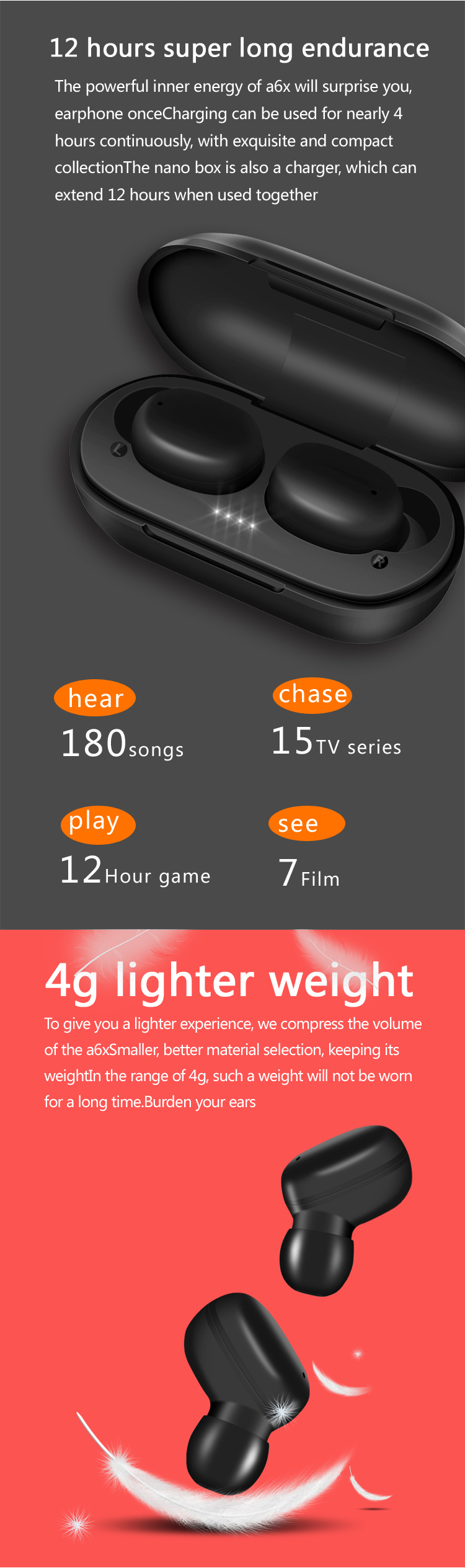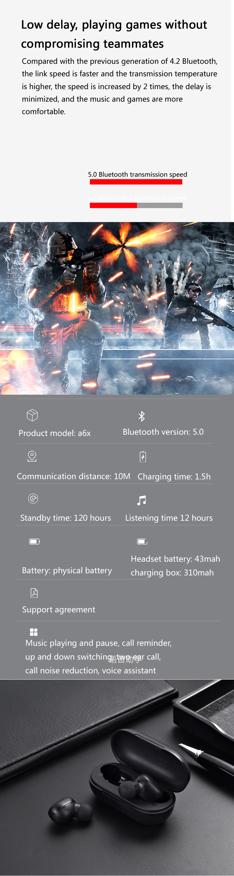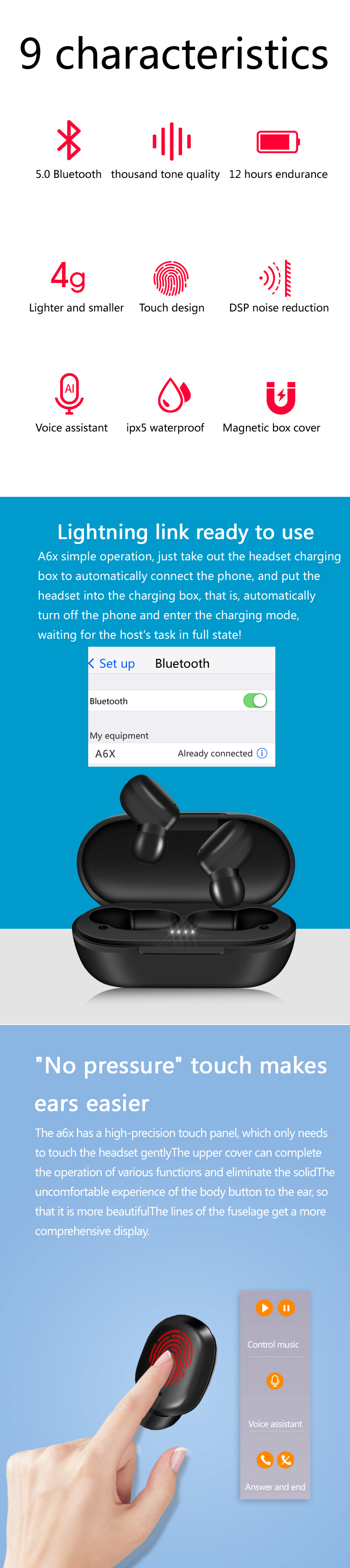 TWS A6X Mini Auriculares Inalambricos Con Microfono Fingerprint Touch HD Stereo Bts Wireless Bluetooth Headset Tws Earbuds
