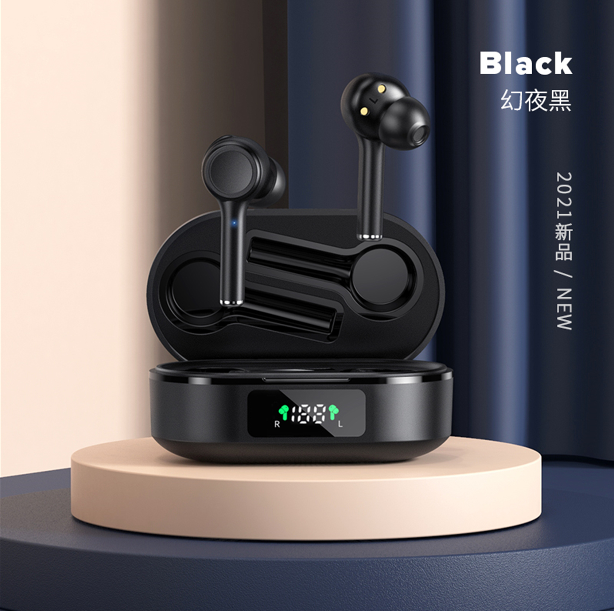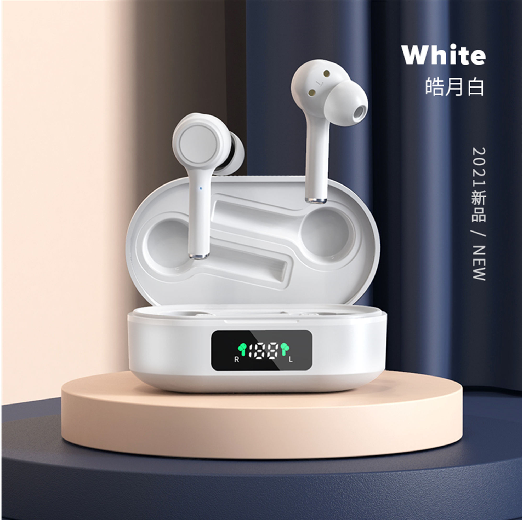 TWS Earbuds Bluetooth Earphones Wireless Headphones with LED Display Casing White Black