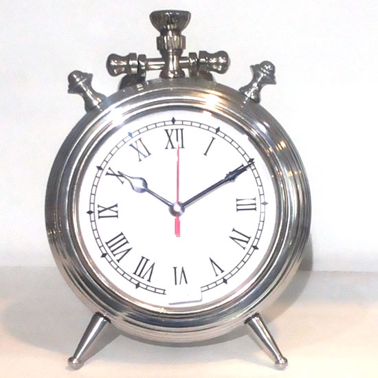 This is a cast aluminum clock with a mirror finish. It features Roman numeral hour markers and 3 clock hands to tell the time. It is perfect for time conscious people.