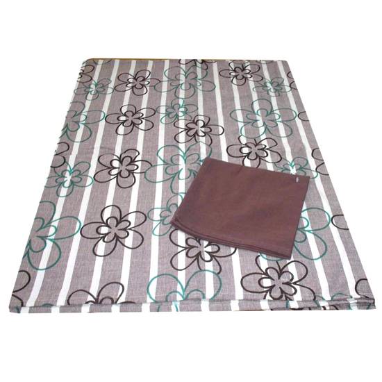 In order to dress up your dining room, this yarn dyed striped tablecloth is your perfect choice. It features green and brown floral patterns and comes with solid colour napkins. Those napkins are ideal to place on users' legs to prevent food stains.