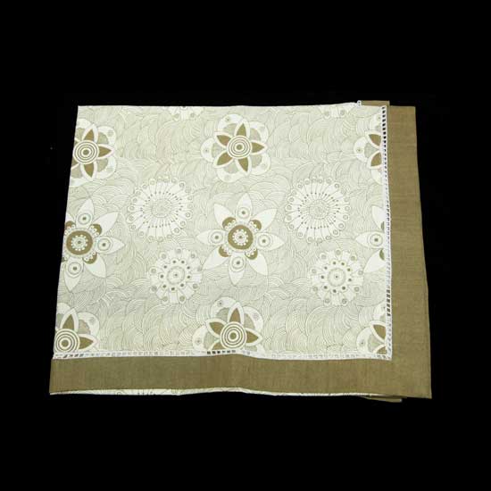 This table cloth is accented with elegant floral motifs. Made from 100% cotton, the table cloth is durable and easy to clean. The tasteful table cloth is perfect for any season and any dinner setting.