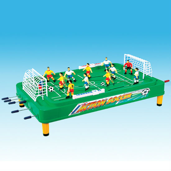 Enjoy the thrill of football in very limited space with this table football game that comes in a compact package. The table is neatly designed with realistic figures and a three dimensional goal, simulating a lifelike scene on the field. Controlling the horizontal movement of the goal keeper in addition to the rotating bars adds a challenging factor to the amusing game.