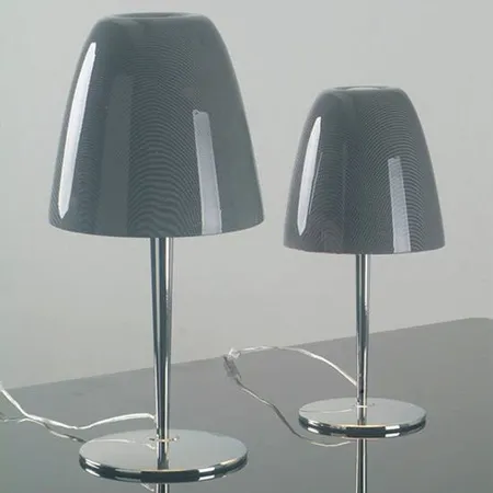 This table lamp features a shiny lampshade in gray color. It boasts a modern and clean-cut design. The unit provides long hours of illumination to brighten up your room. It is perfect for any setting regardless of the conditions.
