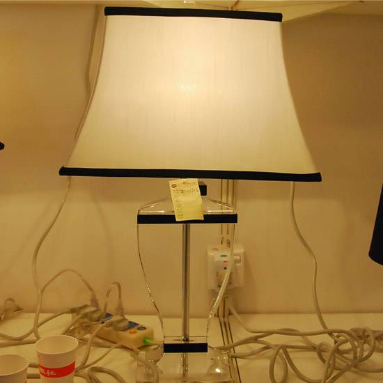 The contemporary table lamp flaunts a crystal base for unique beauty. The large lampshade delivers uniform distribution of light. This table lamp simply complements your home decor in an elegant way.
