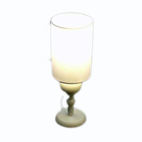 This table lamp boasts a simple form with elegant details. It boasts a bamboo lamp base and a cotton shade to create a gentle, soothing light source. Glamorize your room with this pretty table lamp.