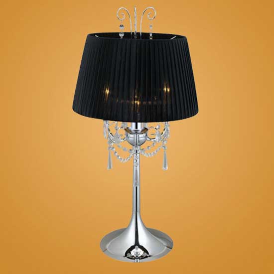 The table lamp bestows an empire lampshade in a cool black finish. The delicate dangling embellishment with the polished construction offers a touch of style. Create a more modern look in any room with this table lamp.