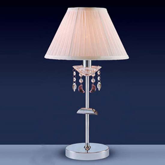 The elegant table lamp boasts a pastel pink lampshade with subtle pleats. The dripping crystals reflect the light to give subtle gleam. Enhance the taste of your home decor with this table lamp.