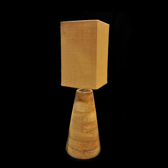 Highlighted here is a table lamp that is handmade by experienced craftsmen. The wooden and jute construction showcases rustic charm. This wooden table lamp will surely add a delicate accent to your place.