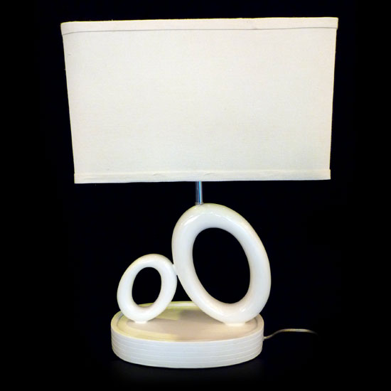 This table lamp features an avant-garde design with ellipses. It attracts attention with an interesting design. This stylish lamp makes a tasteful addition to your home decor.