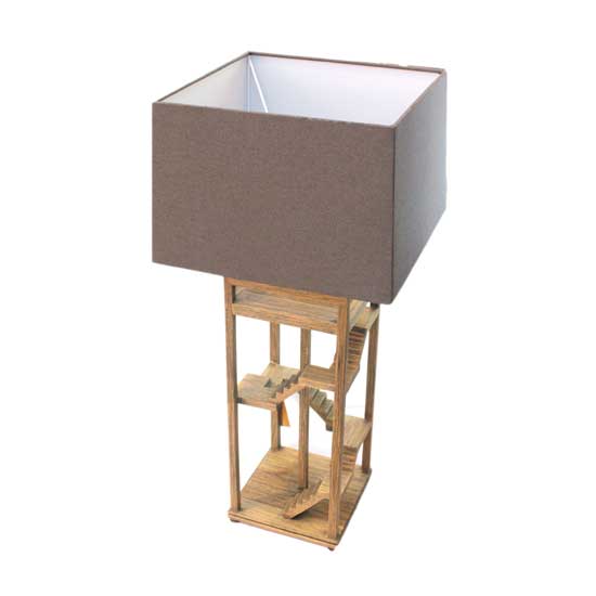 The table lamp is innovatively designed with a wood base and fabric lampshade. The table lamp is surely to offer uniform and well-distributed brightness that is comfortable for eyes. The creative design makes this lamp add a touch of styling for modern rooms.