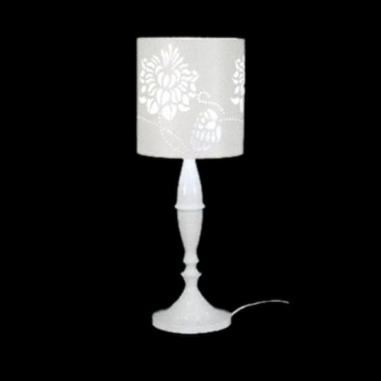 This table lamp comes in clean white, which can match your home décor with ease. The table lamp boasts a delicately crafted stand and a cylindrical lampshade with alluring flower patterns. Made of stainless steel and iron, this elegant lamp promises rugged construction and first-rate durability.