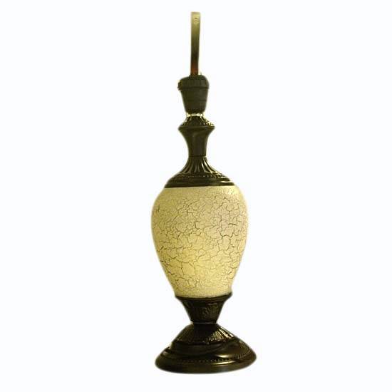 This is a gracefully crafted table lamp base. It boasts a bulbous-shaped rod accented with sculptures and decorative crack patterns for added glamor. This table lamp base makes an elegant way to accent your home decor.