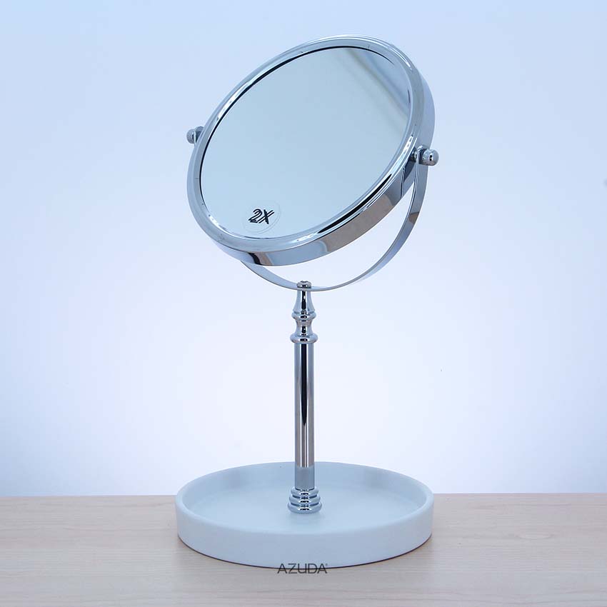 METAL ROUND TABLE MIRROR(1X/2X) W/MARBLE EFFECT BASE TRAY