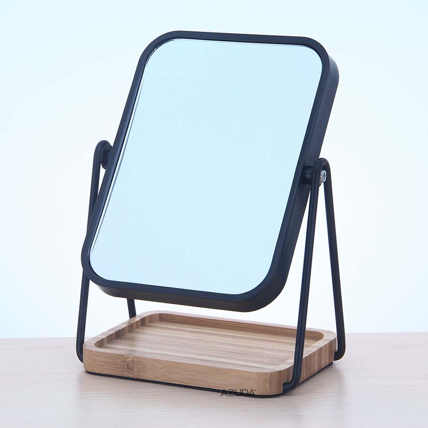 RECTANGULAR TABLE MIRROR(1X/2X) W/BAMBOO TRAY IN POWDER COATING