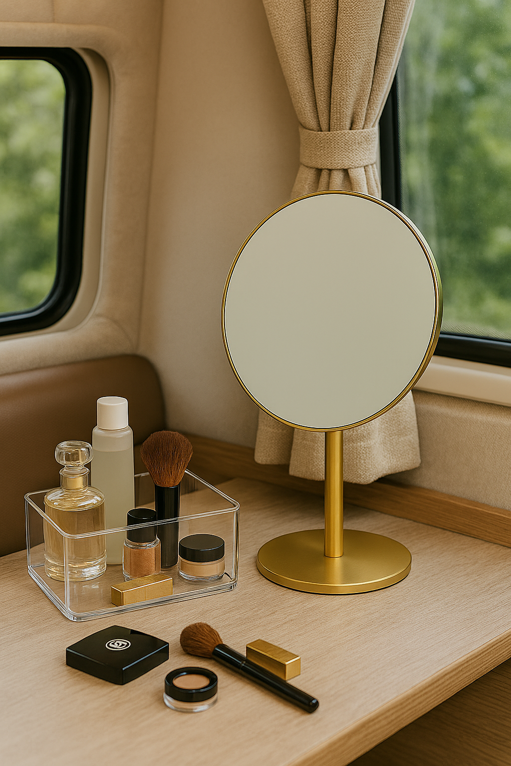 Create the personal vanity space. A sturdy base meets soft curves—where beauty meets function.