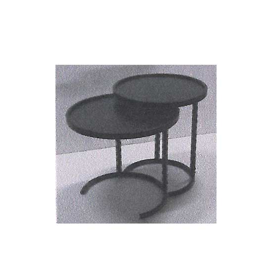 This table set exhibits a stylish and simple design. It features two nested tables in different sizes while sharing a uniform style. The tables make decorative and pragmatic household items.