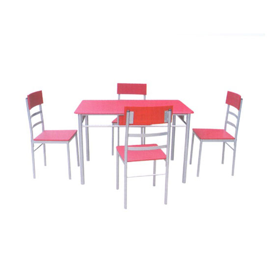 This is a stylish table set with a table and four matching chairs. It is designed in bright pink for an eye-catching look. This table set is made of high-quality plastic for a long service life.